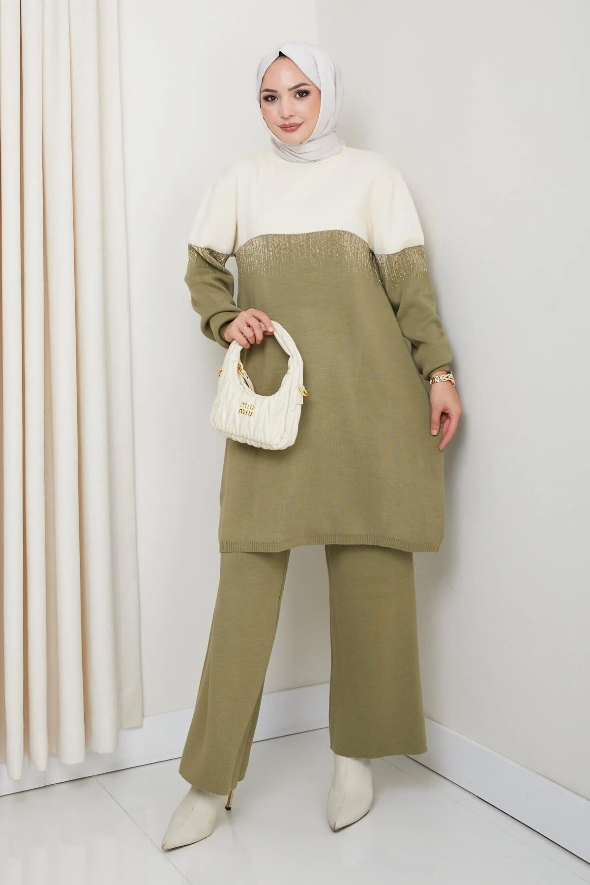 Kadın Simli Desenli Triko Tunik – Uzun Kol Rahat Kalıp