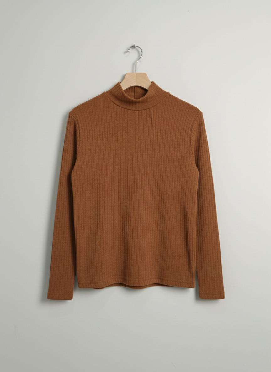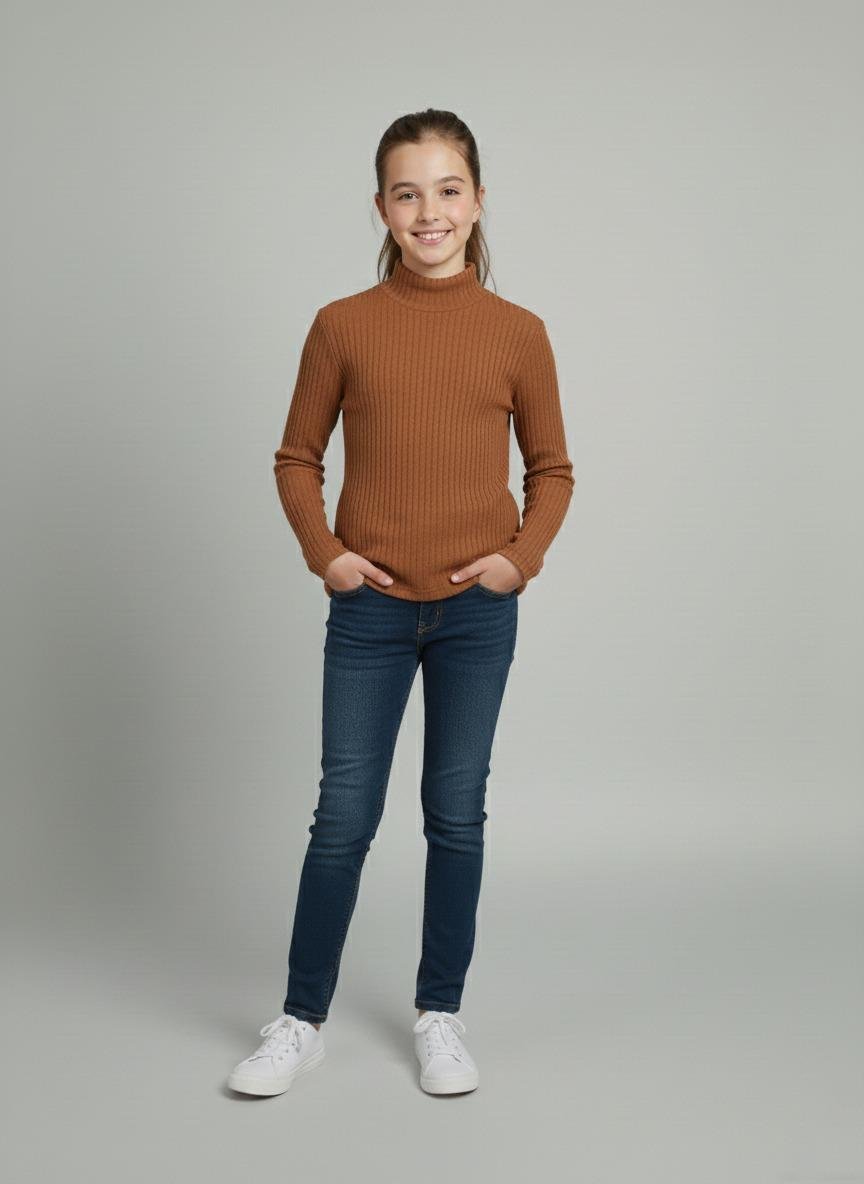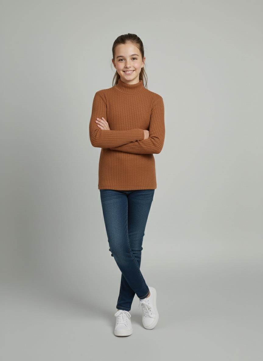 Kız ve Erkek Çocuk Kahverengi Fitilli Yarım Balıkçı Yaka Uzun Kollu Body İçlik