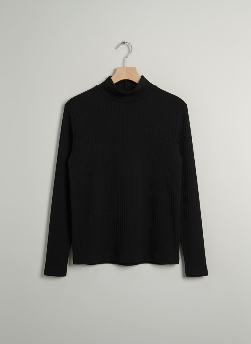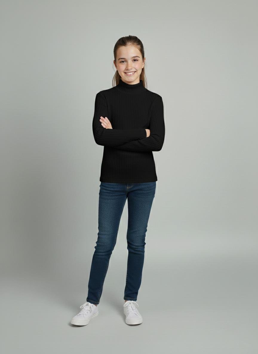 Kız ve Erkek Çocuk Siyah Fitilli Yarım Balıkçı Yaka Uzun Kollu Body İçlik