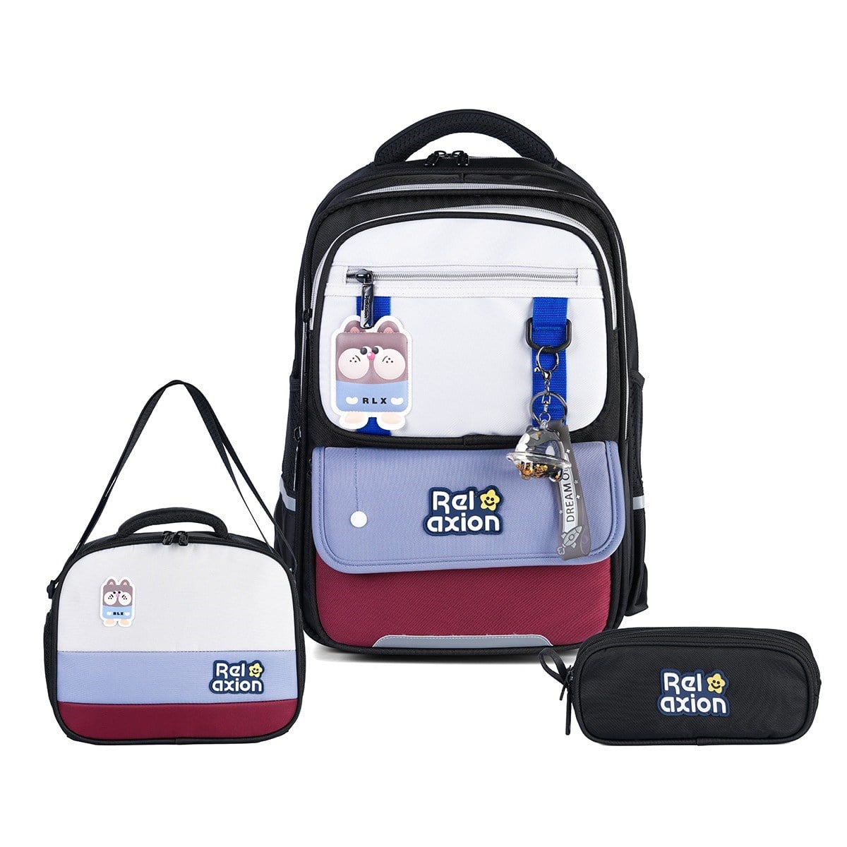 Relaxion 1816 3'lü İlkokul Çanta Seti Siyah - Fanus Aksesuarlı, Ortopedik Sırt Destekli Okul Çantası, Beslenme Çantası ve Kalemlik
