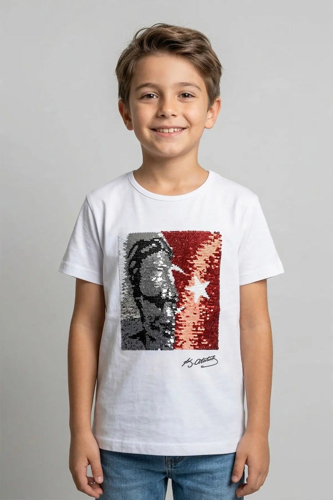 Unısex Çocuk Basic Atatürk Bayra Baskılı Kısa Kollu 23 Nisan 10 Kasım 29 Ekim Okul Gösteri Tişört