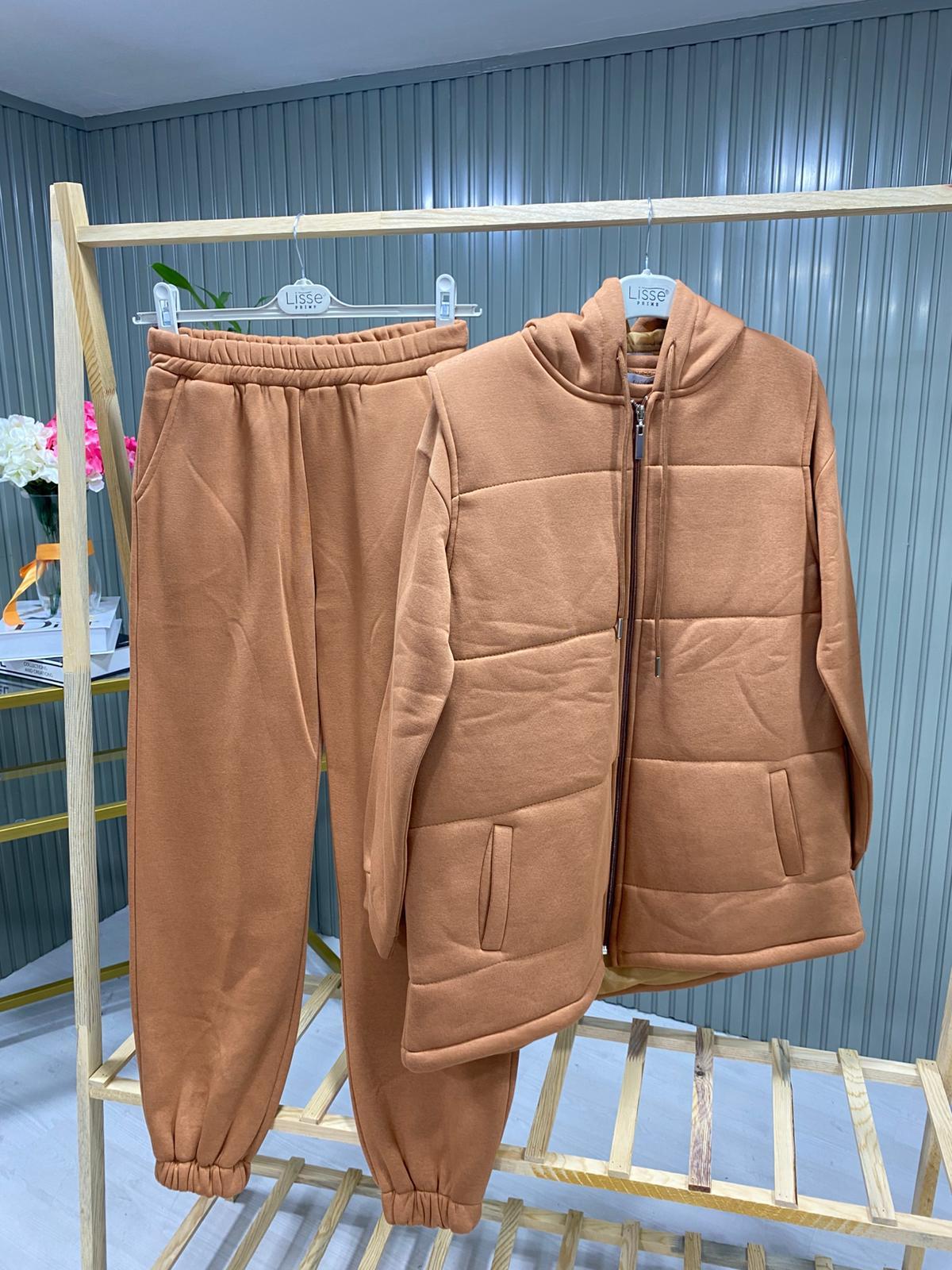 • Tişört + Yelek ve Eşofman Altı şeklinde 3 parçadır • 3 İplik
