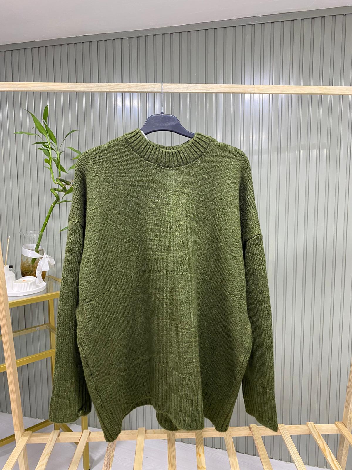 Kadın Haki Bisiklet Yaka Salaş Triko Kazak