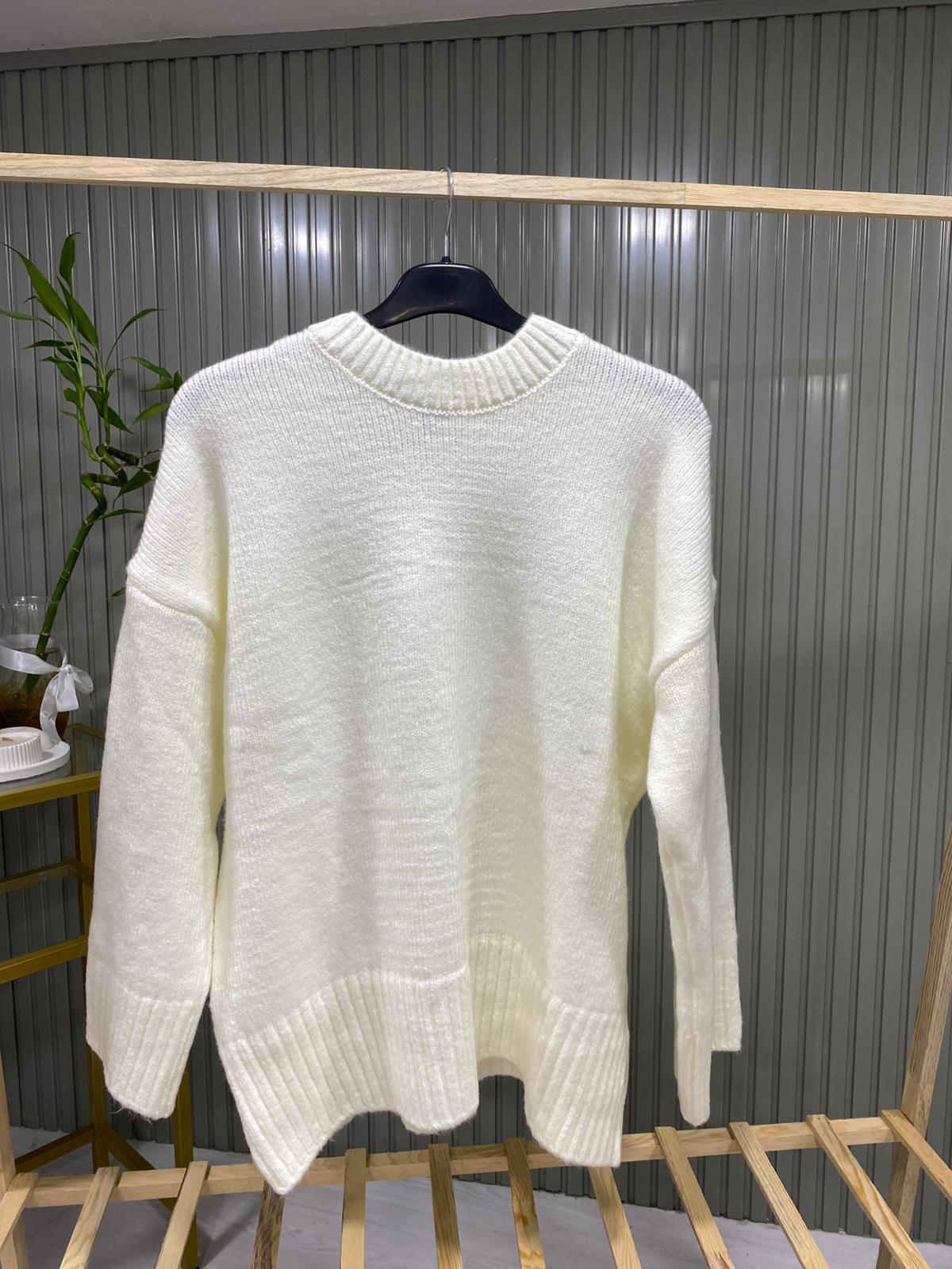 Kadın Krem Bisiklet Yaka Salaş Triko Kazak