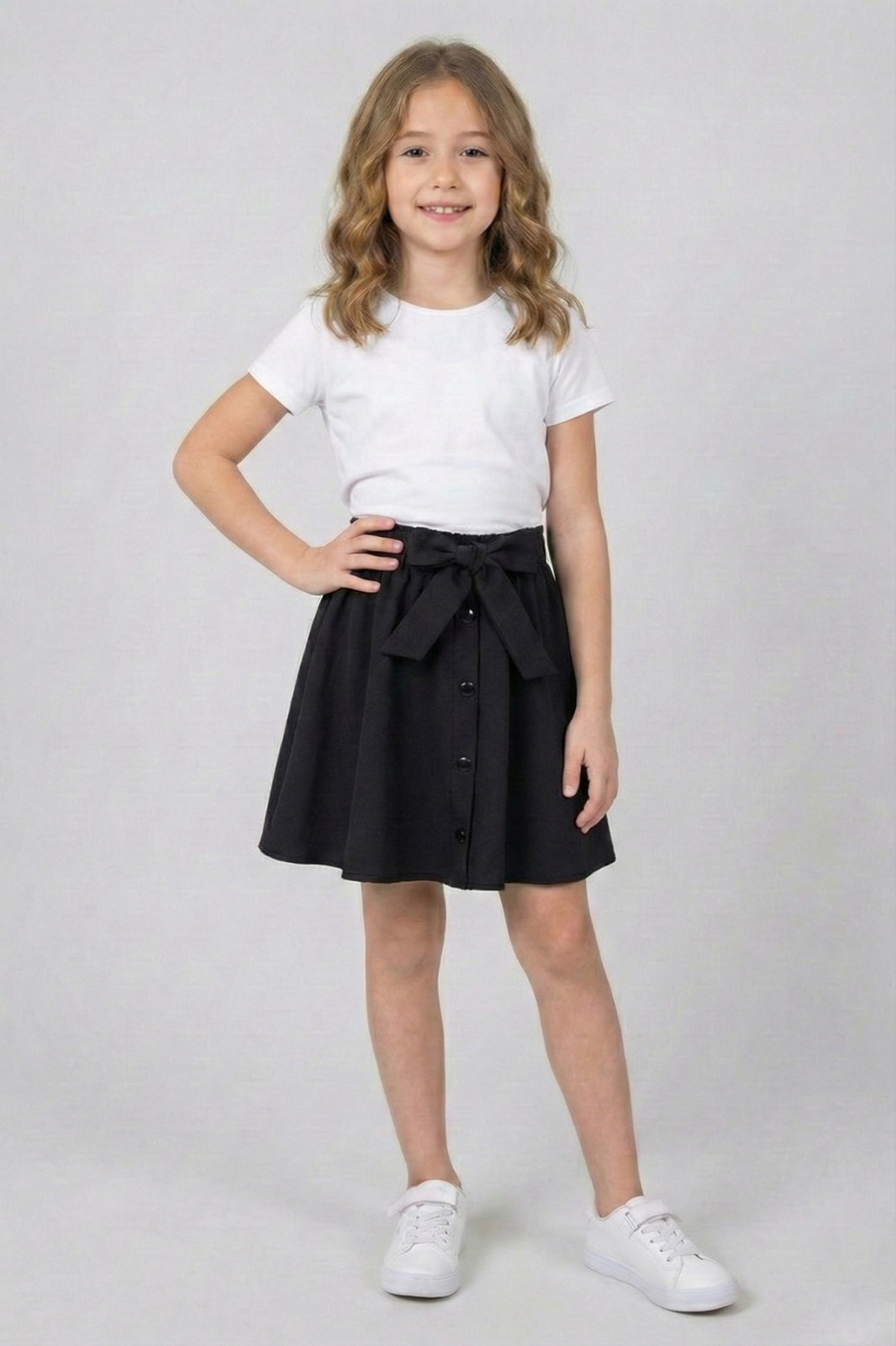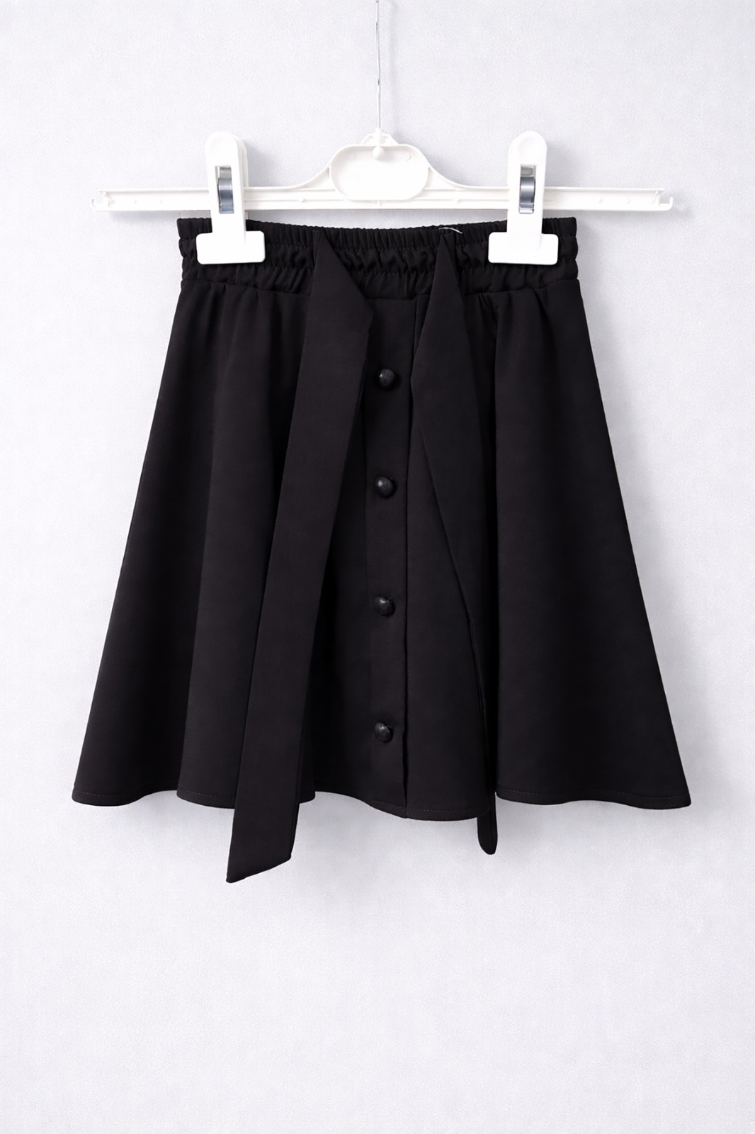Kız Çocuk Siyah Düğme Detaylı Belden Bağlamalı Fiyonklu Kloş Etek 23 Nisan 29 Ekim Gösteri Etek